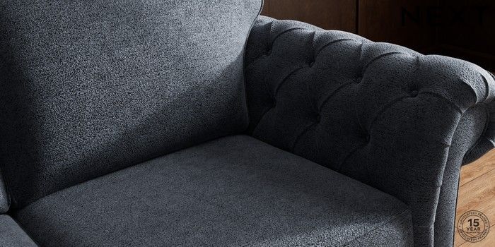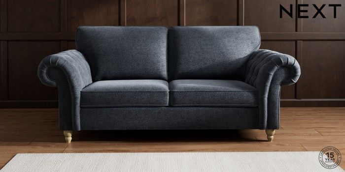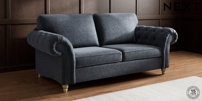 7.2.10 Gosford Highback II Deep Sit 3 Seater Sofa Boucle Chenille Dark Slate Blue Low Turned - Light | Made Click here to use our website with more accessibility support, for example screen readers