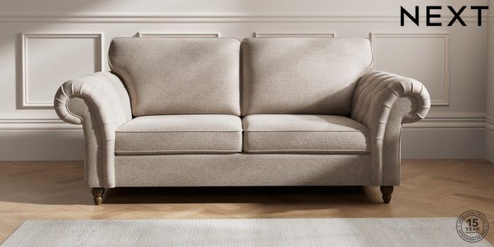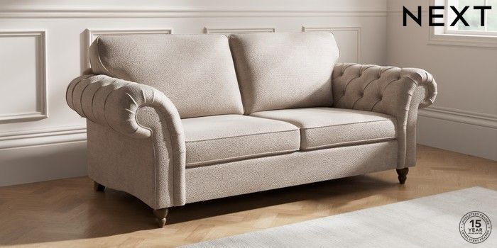 7.2.10 Gosford Highback II Deep Sit 3 Seater Sofa Boucle Chenille Light Natural Low Turned - Mid | Made Click here to use our website with more accessibility support, for example screen readers