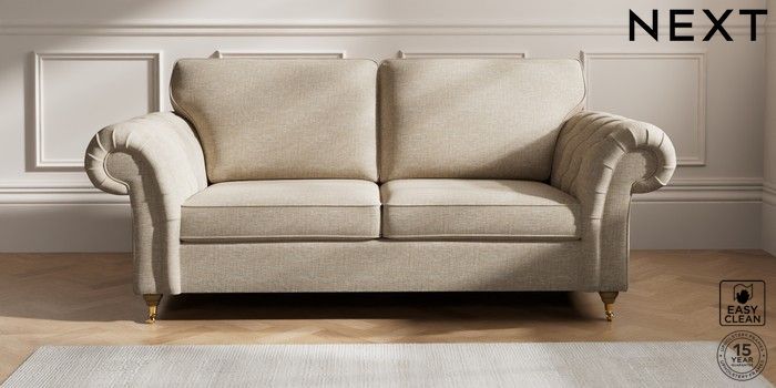 7.2.10 Gosford Highback II Deep Sit 3 Seater Sofa Boucle Weave Easy Clean Dark Natural Castor - Light | Made Click here to use our website with more accessibility support, for example screen readers
