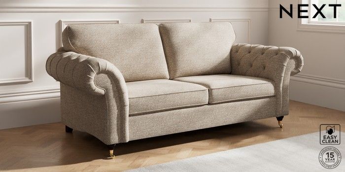 7.2.10 Gosford Highback II Deep Sit 3 Seater Sofa Chunky Boucle Easy Clean Mid Natural Castor - Dark | Made Click here to use our website with more accessibility support, for example screen readers