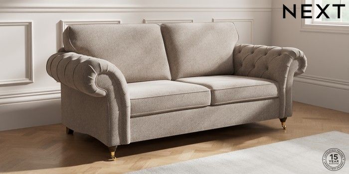 7.2.10 Gosford Highback II Deep Sit 3 Seater Sofa Chunky Chenille Light Dove Castor - Mid | Made Click here to use our website with more accessibility support, for example screen readers