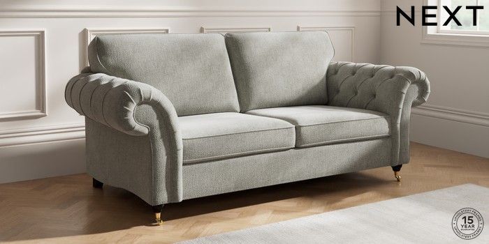 7.2.10 Gosford Highback II Deep Sit 3 Seater Sofa Chunky Chenille Light Grey Castor - Dark | Made Click here to use our website with more accessibility support, for example screen readers