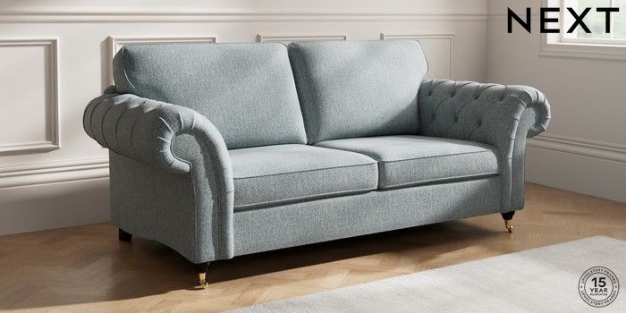 7.2.10 Gosford Highback II Deep Sit 3 Seater Sofa Chunky Weave Mid Blue Castor - Dark | Made Click here to use our website with more accessibility support, for example screen readers