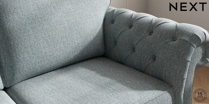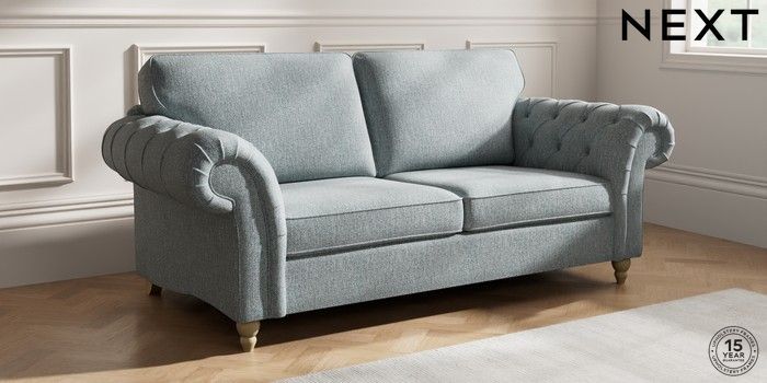 7.2.10 Gosford Highback II Deep Sit 3 Seater Sofa Chunky Weave Mid Blue Low Turned - Light | Made Click here to use our website with more accessibility support, for example screen readers