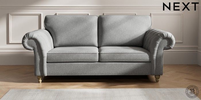 7.2.10 Gosford Highback II Deep Sit 3 Seater Sofa Chunky Weave Mid Grey Low Turned - Light | Made Click here to use our website with more accessibility support, for example screen readers