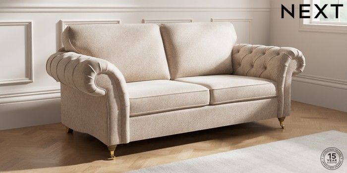 7.2.10 Gosford Highback II Deep Sit 3 Seater Sofa Cotswold Chenille Light Natural Castor - Light | Made Click here to use our website with more accessibility support, for example screen readers