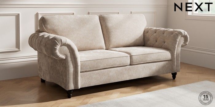 7.2.10 Gosford Highback II Deep Sit 3 Seater Sofa Distressed Velour Mid Natural Low Turned - Dark | Made Click here to use our website with more accessibility support, for example screen readers