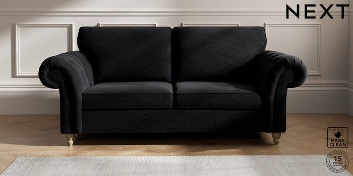 7.2.10 Gosford Highback II Deep Sit 3 Seater Sofa Fine Chenille Easy Clean Black Low Turned - Light | Made Click here to use our website with more accessibility support, for example screen readers
