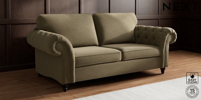 7.2.10 Gosford Highback II Deep Sit 3 Seater Sofa Fine Chenille Easy Clean Dark Moss Green Low Turned - Dark | Made Click here to use our website with more accessibility support, for example screen readers