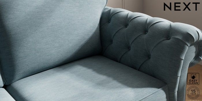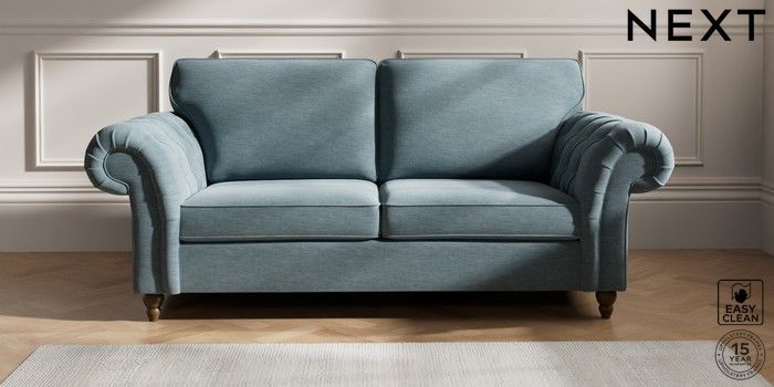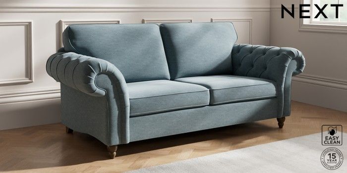 7.2.10 Gosford Highback II Deep Sit 3 Seater Sofa Fine Chenille Easy Clean Mid Blue Low Turned - Mid | Made Click here to use our website with more accessibility support, for example screen readers