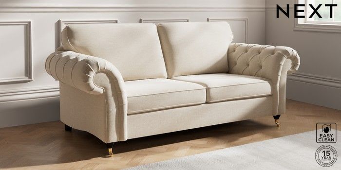 7.2.10 Gosford Highback II Deep Sit 3 Seater Sofa Fine Chenille Easy Clean Oyster Castor - Dark | Made Click here to use our website with more accessibility support, for example screen readers