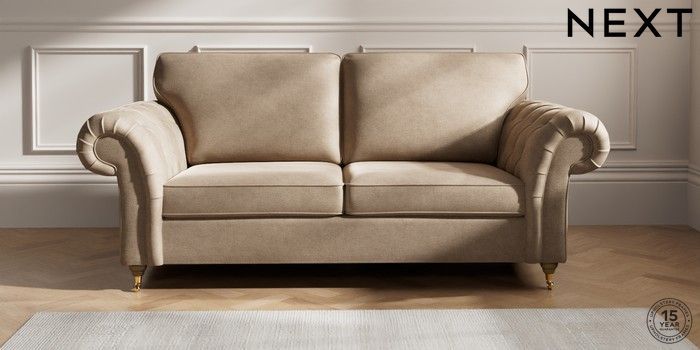 7.2.10 Gosford Highback II Deep Sit 3 Seater Sofa Luxe Chenille Mid Camel Beige Castor - Light | Made Click here to use our website with more accessibility support, for example screen readers