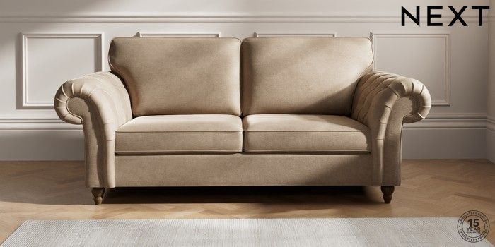 7.2.10 Gosford Highback II Deep Sit 3 Seater Sofa Luxe Chenille Mid Camel Beige Low Turned - Mid | Made Click here to use our website with more accessibility support, for example screen readers