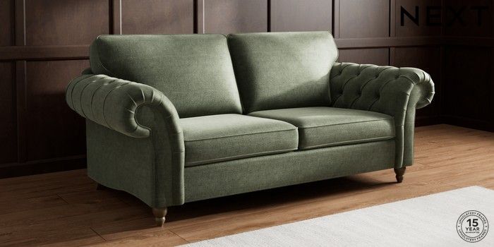 7.2.10 Gosford Highback II Deep Sit 3 Seater Sofa Luxe Chenille Mid Green Low Turned - Mid | Made Click here to use our website with more accessibility support, for example screen readers