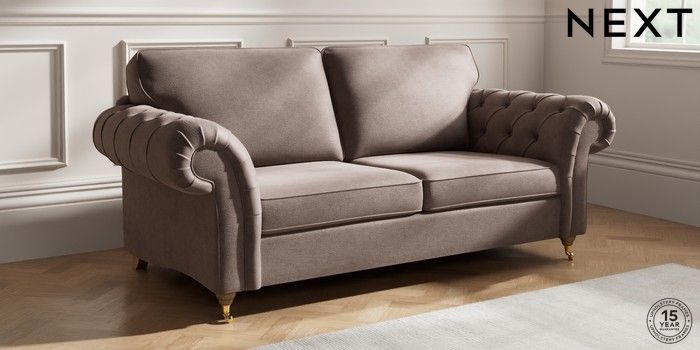 7.2.10 Gosford Highback II Deep Sit 3 Seater Sofa Luxe Chenille Mink Brown Castor - Light | Made Click here to use our website with more accessibility support, for example screen readers