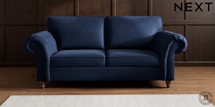 7.2.10 Gosford Highback II Deep Sit 3 Seater Sofa Luxe Chenille Navy Blue Low Turned - Mid | Made Click here to use our website with more accessibility support, for example screen readers