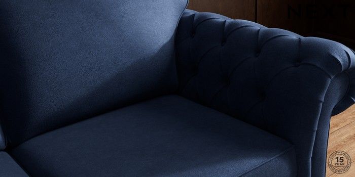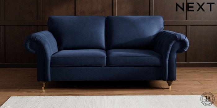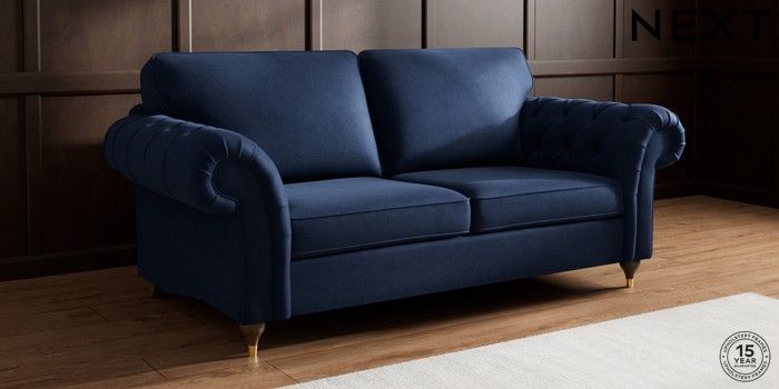 7.2.10 Gosford Highback II Deep Sit 3 Seater Sofa Luxe Chenille Navy Blue Modern Turned Metal Cap - Mid | Made Click here to use our website with more accessibility support, for example screen readers