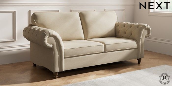 The Gosford High Back sofa brings all the charm and elegance of the classic Gosford, with added comfort thanks to its higher back cushions. The gorgeous deep buttoning on the arms really makes a style statement. This sofa features our special "Firmer Sit" seat cushions, which use a high-density foam core surrounded by soft toppers. This smart design provides ultimate support, lasting durability, and ensures the cushions always spring back to their tailored look. They're also wonderfully low-maintenance. For an extra touch of luxury, we've included plush scatter cushions filled with a rich fibre mix. The seat cushions are reversible too, so a quick flip and plump will keep them looking their best. Make the Gosford High Back uniquely yours by choosing from a huge range of fabrics and a choice of feet.