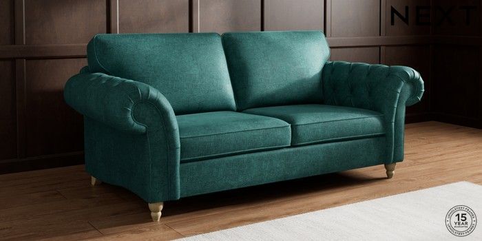 7.2.10 Gosford Highback II Deep Sit 3 Seater Sofa Plush Chenille Dark Teal Green Low Turned - Light | Made Click here to use our website with more accessibility support, for example screen readers
