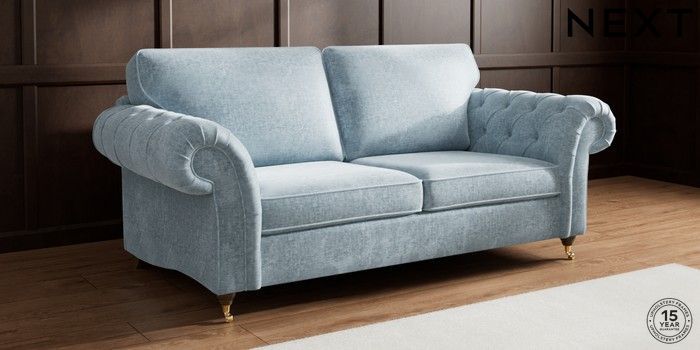 7.2.10 Gosford Highback II Deep Sit 3 Seater Sofa Plush Chenille Light Blue Castor - Mid | Made Click here to use our website with more accessibility support, for example screen readers