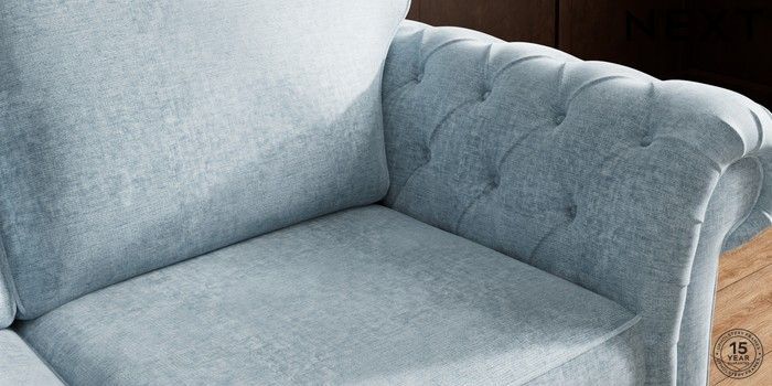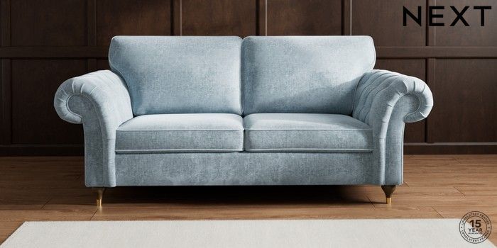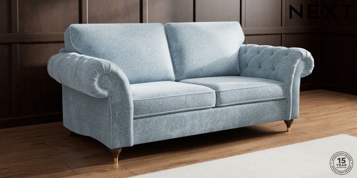 7.2.10 Gosford Highback II Deep Sit 3 Seater Sofa Plush Chenille Light Blue Modern Turned Metal Cap - Mid | Made Click here to use our website with more accessibility support, for example screen readers
