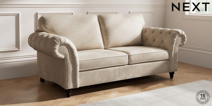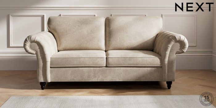 7.2.10 Gosford Highback II Deep Sit 3 Seater Sofa Plush Chenille Light Natural Low Turned - Dark | Made Click here to use our website with more accessibility support, for example screen readers