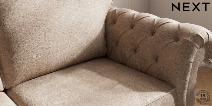 7.2.10 Gosford Highback II Deep Sit 3 Seater Sofa Plush Chenille Mid Natural Castor - Light | Made Click here to use our website with more accessibility support, for example screen readers