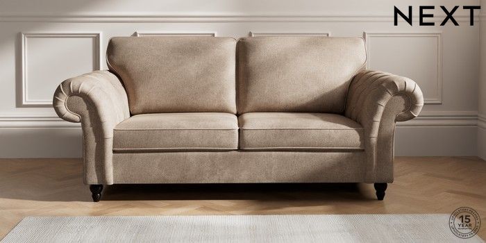 7.2.10 Gosford Highback II Deep Sit 3 Seater Sofa Plush Chenille Mid Natural Low Turned - Dark | Made Click here to use our website with more accessibility support, for example screen readers