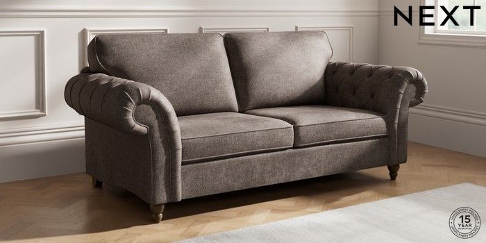 7.2.10 Gosford Highback II Deep Sit 3 Seater Sofa Plush Chenille Mink Brown Low Turned - Mid | Made Click here to use our website with more accessibility support, for example screen readers