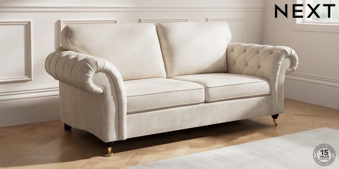 7.2.10 Gosford Highback II Deep Sit 3 Seater Sofa Plush Chenille Oyster Castor - Dark | Made Click here to use our website with more accessibility support, for example screen readers