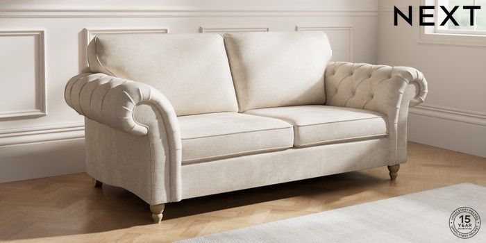 7.2.10 Gosford Highback II Deep Sit 3 Seater Sofa Plush Chenille Oyster Low Turned - Light | Made Click here to use our website with more accessibility support, for example screen readers