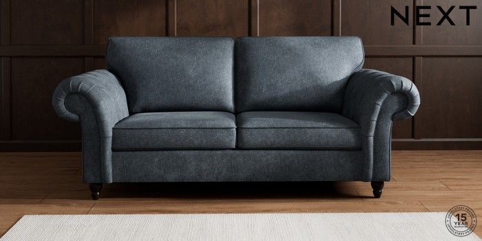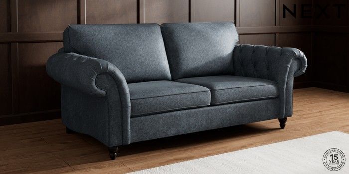 7.2.10 Gosford Highback II Deep Sit 3 Seater Sofa Plush Chenille Slate Blue Low Turned - Dark | Made Click here to use our website with more accessibility support, for example screen readers