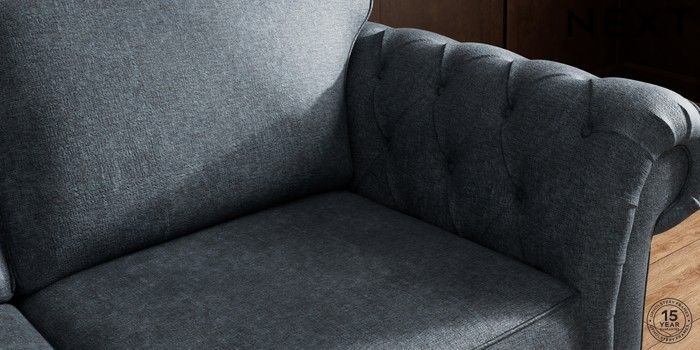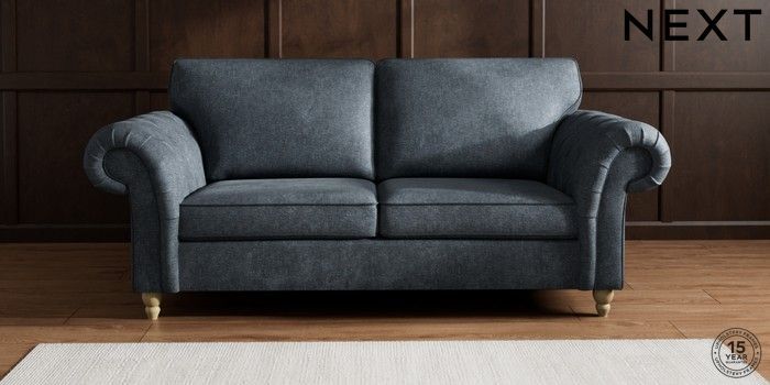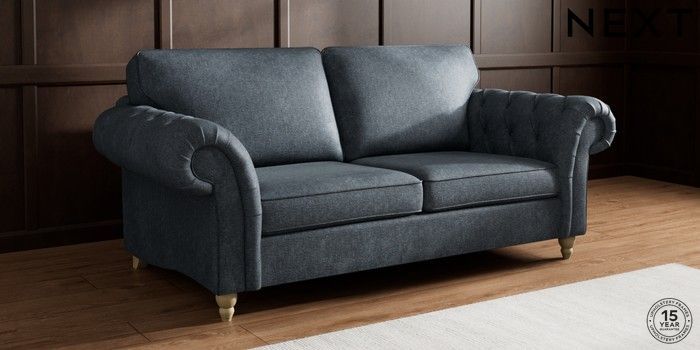 7.2.10 Gosford Highback II Deep Sit 3 Seater Sofa Plush Chenille Slate Blue Low Turned - Light | Made Click here to use our website with more accessibility support, for example screen readers