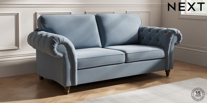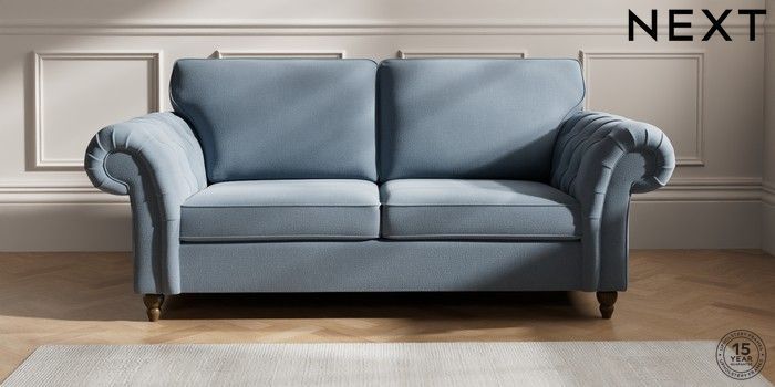 7.2.10 Gosford Highback II Deep Sit 3 Seater Sofa Relaxed Linen Look Mid Blue Low Turned - Mid | Made Click here to use our website with more accessibility support, for example screen readers