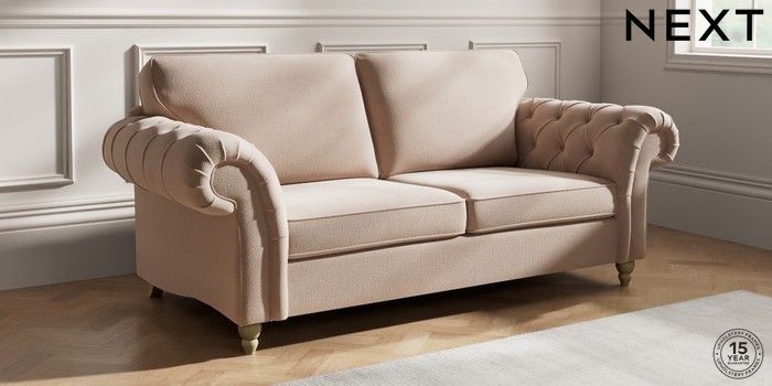 7.2.10 Gosford Highback II Deep Sit 3 Seater Sofa Relaxed Linen Look Mid Natural Low Turned - Light | Made Click here to use our website with more accessibility support, for example screen readers