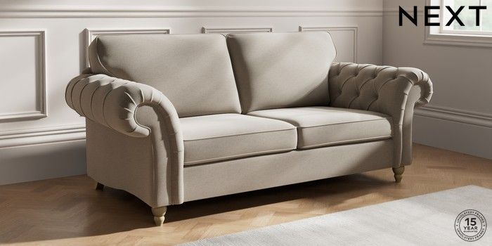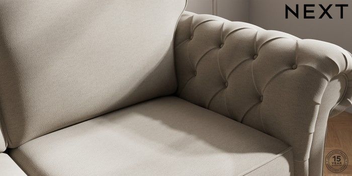 7.2.10 Gosford Highback II Deep Sit 3 Seater Sofa Ripple Chenille Light Natural Low Turned - Light | Made Click here to use our website with more accessibility support, for example screen readers