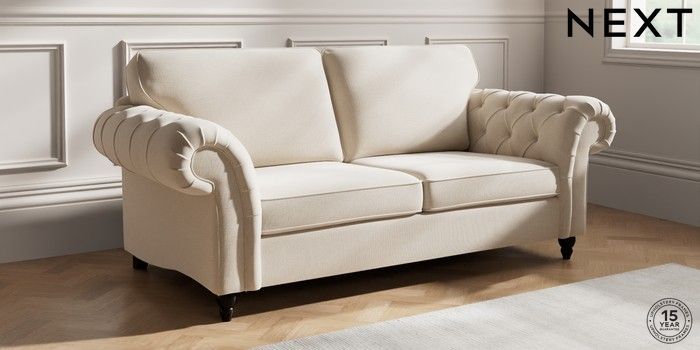 7.2.10 Gosford Highback II Deep Sit 3 Seater Sofa Studio Chenille Oyster Low Turned - Dark | Made Click here to use our website with more accessibility support, for example screen readers