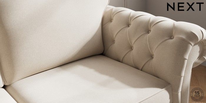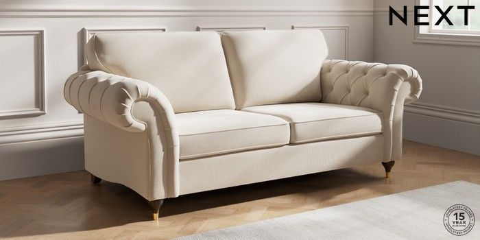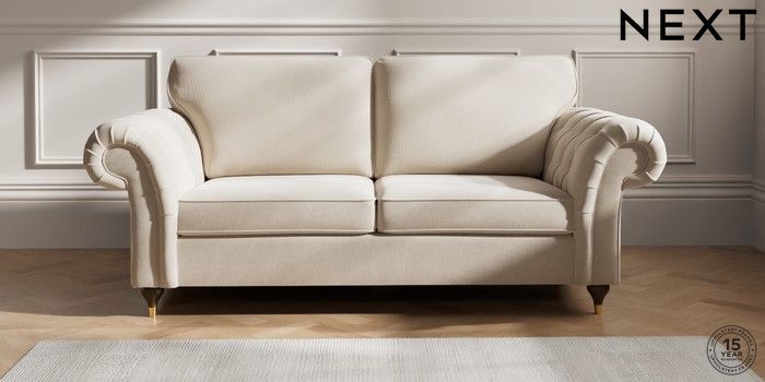 7.2.10 Gosford Highback II Deep Sit 3 Seater Sofa Studio Chenille Oyster Modern Turned Metal Cap - Mid | Made Click here to use our website with more accessibility support, for example screen readers