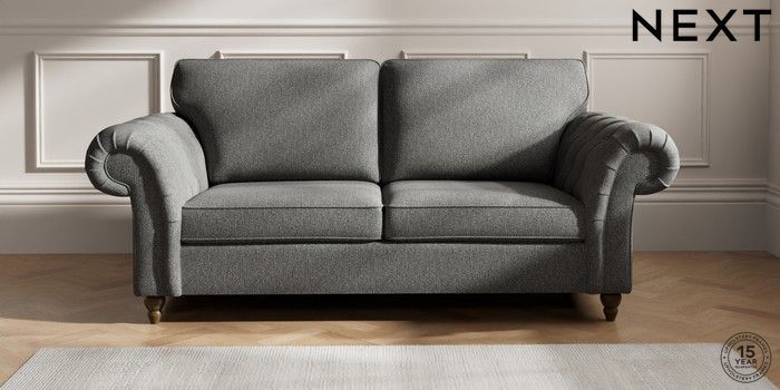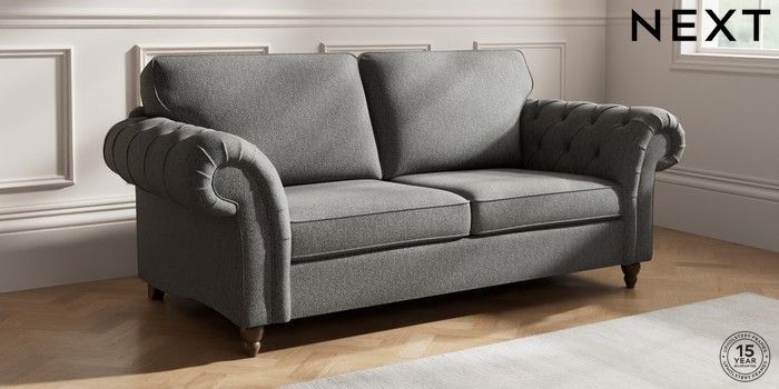 7.2.10 Gosford Highback II Deep Sit 3 Seater Sofa Tweedy Chenille Dark Grey Low Turned - Mid | Made Click here to use our website with more accessibility support, for example screen readers
