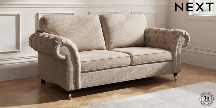 7.2.10 Gosford Highback II Deep Sit 3 Seater Sofa Tweedy Chenille Mid Natural Castor - Dark | Made Click here to use our website with more accessibility support, for example screen readers