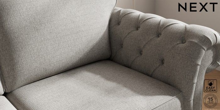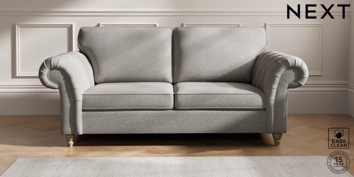 7.2.10 Gosford Highback II Deep Sit 3 Seater Sofa Woven Chenille Easy Clean Light Grey Low Turned - Light | Made Click here to use our website with more accessibility support, for example screen readers