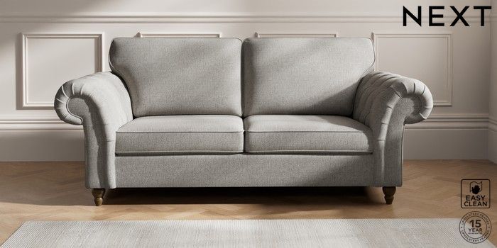 7.2.10 Gosford Highback II Deep Sit 3 Seater Sofa Woven Chenille Easy Clean Light Grey Low Turned - Mid | Made Click here to use our website with more accessibility support, for example screen readers