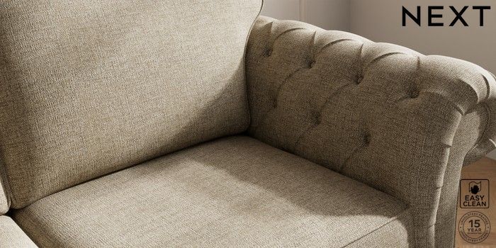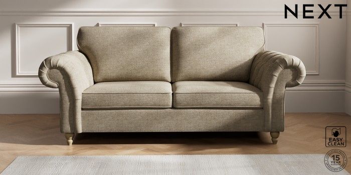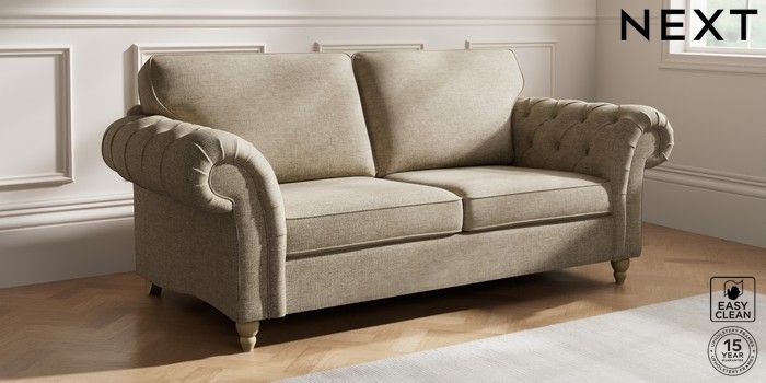 7.2.10 Gosford Highback II Deep Sit 3 Seater Sofa Woven Chenille Easy Clean Mid Natural Low Turned - Light | Made Click here to use our website with more accessibility support, for example screen readers