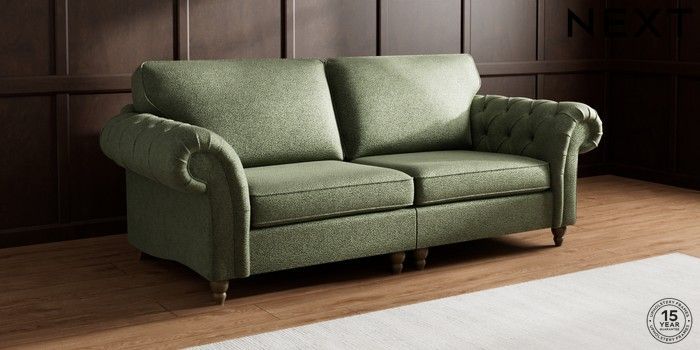 7.2.10 Gosford Highback II Deep Sit 4 Seater Sofa Boucle Chenille Dark Moss Green Low Turned - Mid | Made Click here to use our website with more accessibility support, for example screen readers
