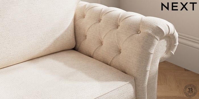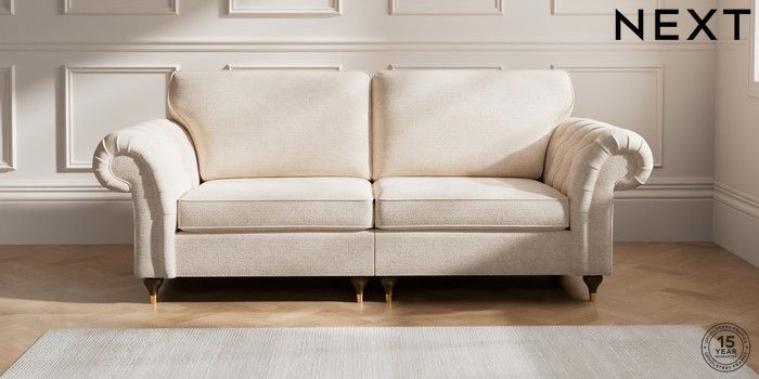 7.2.10 Gosford Highback II Deep Sit 4 Seater Sofa Boucle Chenille Oyster Modern Turned Metal Cap - Mid | Made Click here to use our website with more accessibility support, for example screen readers