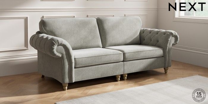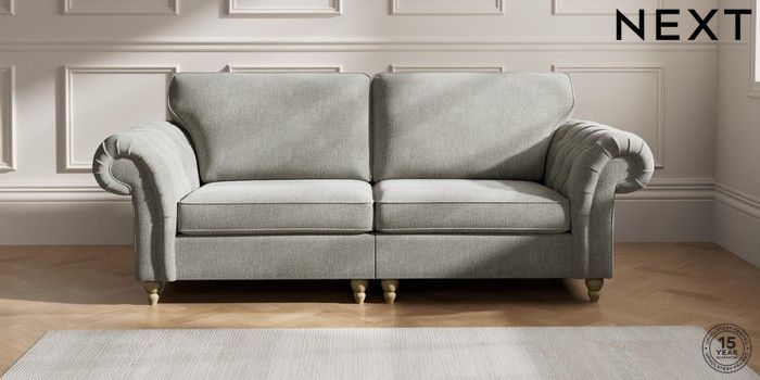7.2.10 Gosford Highback II Deep Sit 4 Seater Sofa Chunky Chenille Light Grey Low Turned - Light | Made Click here to use our website with more accessibility support, for example screen readers