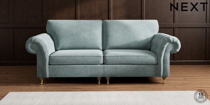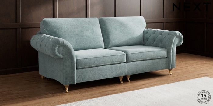 7.2.10 Gosford Highback II Deep Sit 4 Seater Sofa Chunky Chenille Light Teal Green Castor - Light | Made Click here to use our website with more accessibility support, for example screen readers