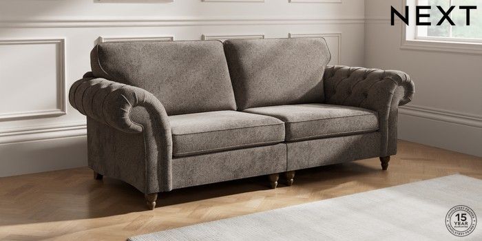 7.2.10 Gosford Highback II Deep Sit 4 Seater Sofa Chunky Chenille Mink Brown Low Turned - Mid | Made Click here to use our website with more accessibility support, for example screen readers