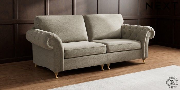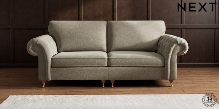 7.2.10 Gosford Highback II Deep Sit 4 Seater Sofa Chunky Marl Light Olive Green Castor - Light | Made Click here to use our website with more accessibility support, for example screen readers