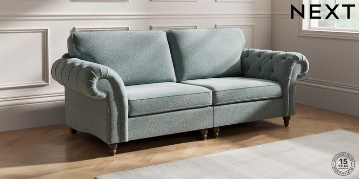 7.2.10 Gosford Highback II Deep Sit 4 Seater Sofa Chunky Marl Mid Blue Low Turned - Mid | Made Click here to use our website with more accessibility support, for example screen readers